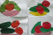 "Җиләк-җимеш компоты". 17.09.2015 Бүген без уртанчылар һәм зурлар төркемендә тәрбияләнүче балалар белән иҗади сәнгать- кисеп ябыштыру шөгылендә кайчыны дөрес тоту алымнарын кабатладык,түгәрәк, овал, кисәргә өйрәнү максатыннан төсле кәгазьләрдән алма, груша, слива, лимон, апельсиннардан кисеп, җиләк-җимеш компоты "кайнаттык".