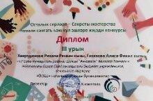 Кечкенәләр төркеменә йөрүче балаларыбыз белән Республика күләм "Осталык серләре" конкурсына катнашып 3 урынга лаек булдык. Татмедиа тарафыннан истәлекле бүләкләр дә бирелде. Уңышларыгыз күп булсын!