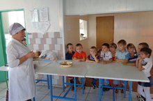 "Балалар бакчасы буйлап сәяхәт". 23.09.2014 Бүген без уртанчылар һәм зурлар төркемендә тәрбияләнүче балалар белән бакча буйлап сәяхәт ясадык. Безне тәмле ашлар белән сыйлаучы пешекче Рузалия апабызнын эше белән таныштык.