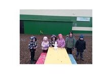 Бүген без кечкенәләр белән кипкән яфракларны төрле төскә буяп матур урман ясадык.