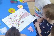 Кечкенәләр белән бармаклар ярдәмендә агачка тәмле конфетлар ясадык.