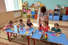 Кечкенәләр төркемендә "Светофор безнең дустыбыз" дип исемләнгән ябыштыру дәресе.
