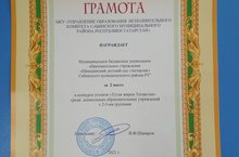 "Туган җирем-Татарстан татар почмаклары бәйгесендә 2-3 төркемле садиклар арасында 2нче урынны яуладык.