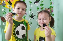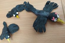Бүген балалар белән кара каргалар әвәләдек.Карганың кара төстән гәүдәсен,башын,койрыгын һәм канатларын түгәрәк һәм озынча пласилиннан ясадык.Аякарын,томшыгын,күзләрен башка төстән әвәләп куйдык.Эшчәнлек кызыкл һәм файдалы үтте.