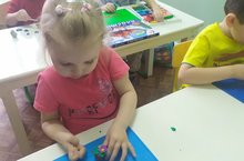 Чәчәк әвәләп ясарга өйрәнүне дәвам иттек.Композиция төзергә,предметларның зурлыкларын чамалап ясарга,пластилинны бармаклар белән чеметеп алып ясарга өйрәндек.