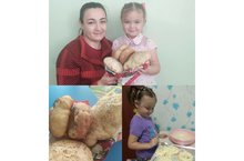 Тозлы камырдан йөзләрен китереп, Хусаенова Алинә белән әнисе пешергән кумәчләр.Молодцы!