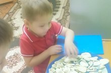 Балалар белән икегә бөкләнгән кәгазь битеннән бердәй ике кисәк кисү алымы белән таныштык.Почмакларны түгәрәкләп кисергә өйрәндек.
