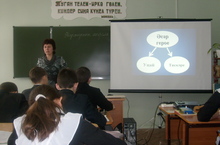 Мәктәпнең татар теле һәм әдәбияты укытучысы Зәйнәгыева Зөлфия Фоат кызы 6 класста татар әдәбиятыннан Л.Ихсанованың "Наил, Фаил һәм башкалар" әсәрен йомгаклау буенча "Яхшы кеше булу җиңелме?" дигән темага ачык дәрес үткәрде.