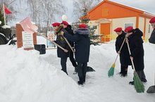 Хәрби - патриотик айлык башлангычы итеп, бүген "Юнармия" отряды авылдашларыбыз истәлегенә ачылган "Хәтер тактасы"н кардан чистарттылар. Сугыш кырларында ятып калган батырларны 1 минут тынлык белән искә алдылар.