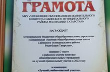 Мәктәп укучылары иртә яздан көзгә кадәр мәктәп яны бакчасында тырышып эшлиләр. Шуның нәтиҗәсе буларак мәктәбебез "Иң яхшы тәҗрибә участогы" номинациясендә район күләмендә 3 нче урынга лаек булды. Без булдырабыз! Афарин!