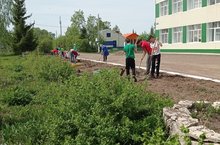 В рамках акции "Зеленая весна" учащиеся и учителя посадили возле школы красивые цветы, уничтожили сорняки.
