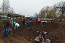 Бүген мәктәп бакчасында укытучылар коллективы чөгендер чәчәргә кереште, территорияне корыган үләннәрдән чистартты.
