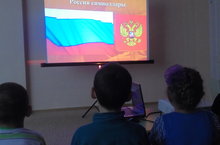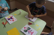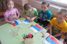Иҗади сәнгать эшчәнлегендә балалар төсле кәгазьләрдән Россия флагы кисеп ябыштырдылар.Төсләренең нәрсә аңлатуы турында да сөйли алдылар