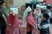 Татар егетләре кигән түбәтәйләрне,татар кызларының калфакларын киеп ,борынгы әби- бабаларыбыз уйнаган уеннарны уйныйбыз.