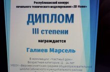Ученик 7 класса участвовал в республиканском конкурсе и был награжден дипломом III степени.