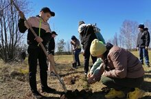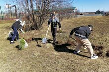 С учащимися 6 класса была организована акция"Сад памяти".С этой целью они посадили деревья.