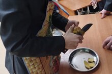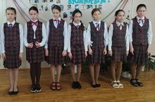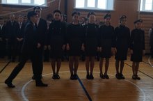 На классном часу проводился смотр строя и песни между учащимися 2-11 классов.Дети очень хорошо подготовились и тщательно продумали костюмы.В результате 9 классы получили I, 11 и 7 классы - II и 5 классы получили III места.