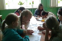 Лагерьның бүгенге көнен "Башваткычлар иленә сәяхәт" дип атадык. Укучылар белән төрле авырлыктагы кроссвордлар, ребуслар, чиштек.