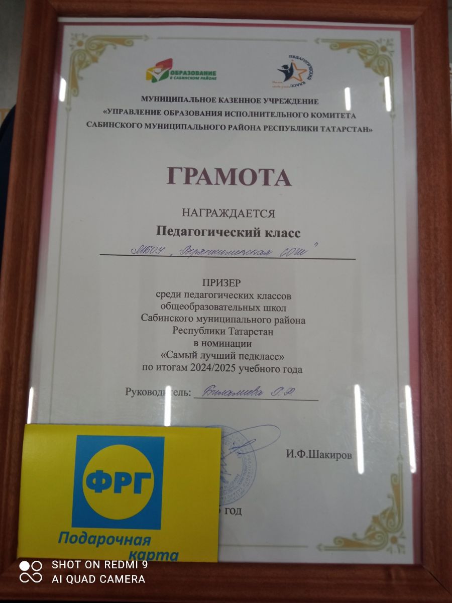Диплом победителя на районном конкурсе "Педкласс - это про нас"