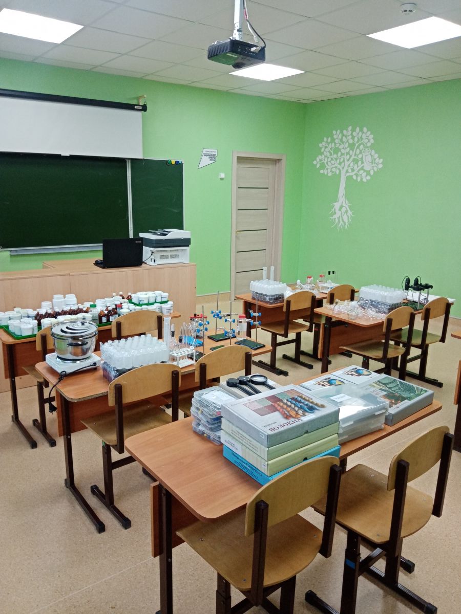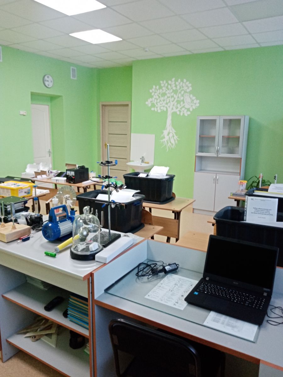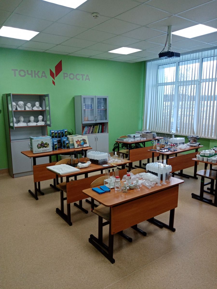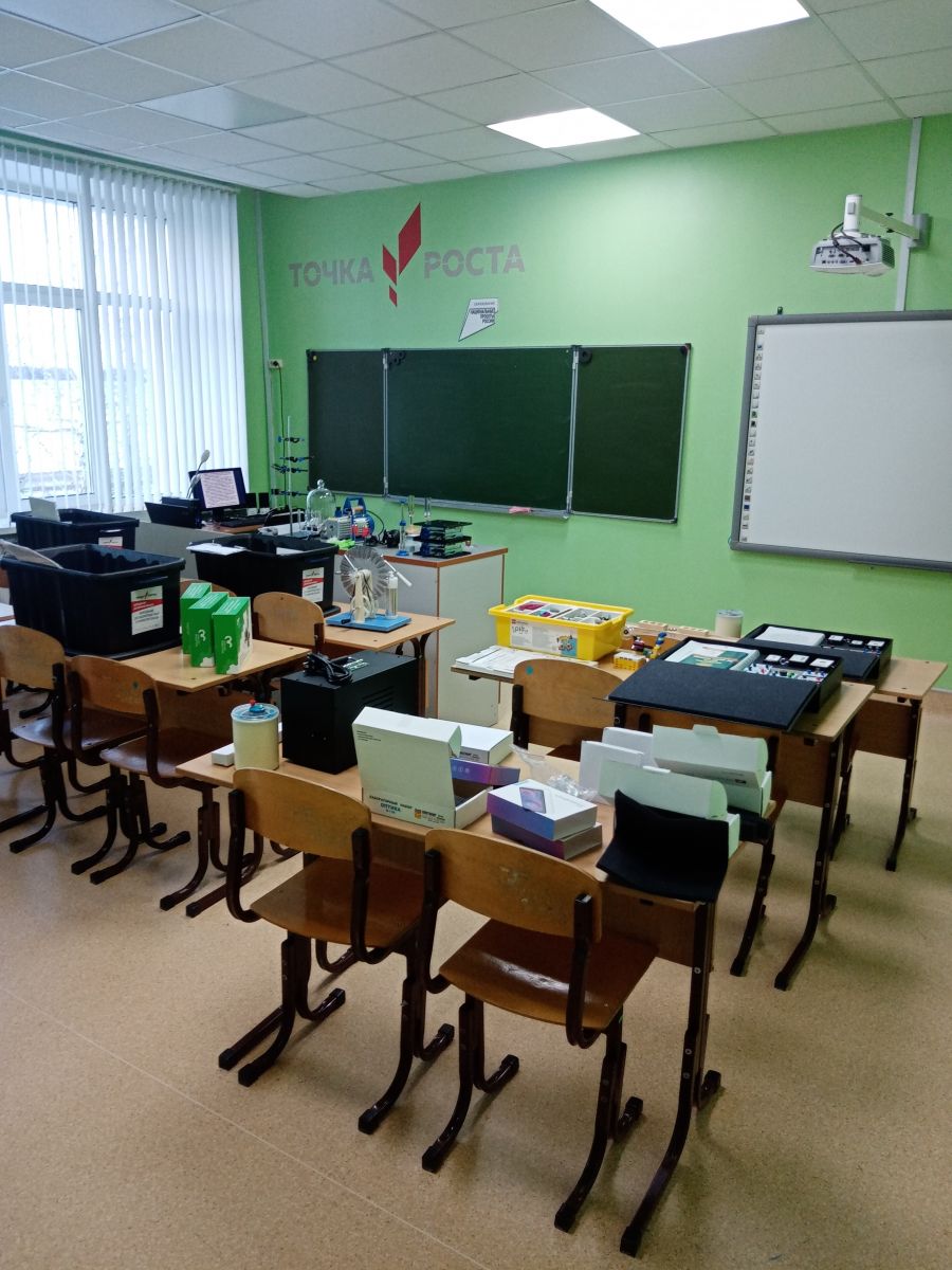Центр естественно-научной и технологической направленности Точка Роста" расположен на втором этаже школы и имеет в своем составе две аудитори