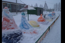 Балалар бакчасы янын кардан ясалган сыннар белән бизәдек.Бу эштә безгә әти-әниләр дә булышты.Өмәдә катнашкан барлык әти-әниләргә дә зур рәхмәтебезне җиткерәбез