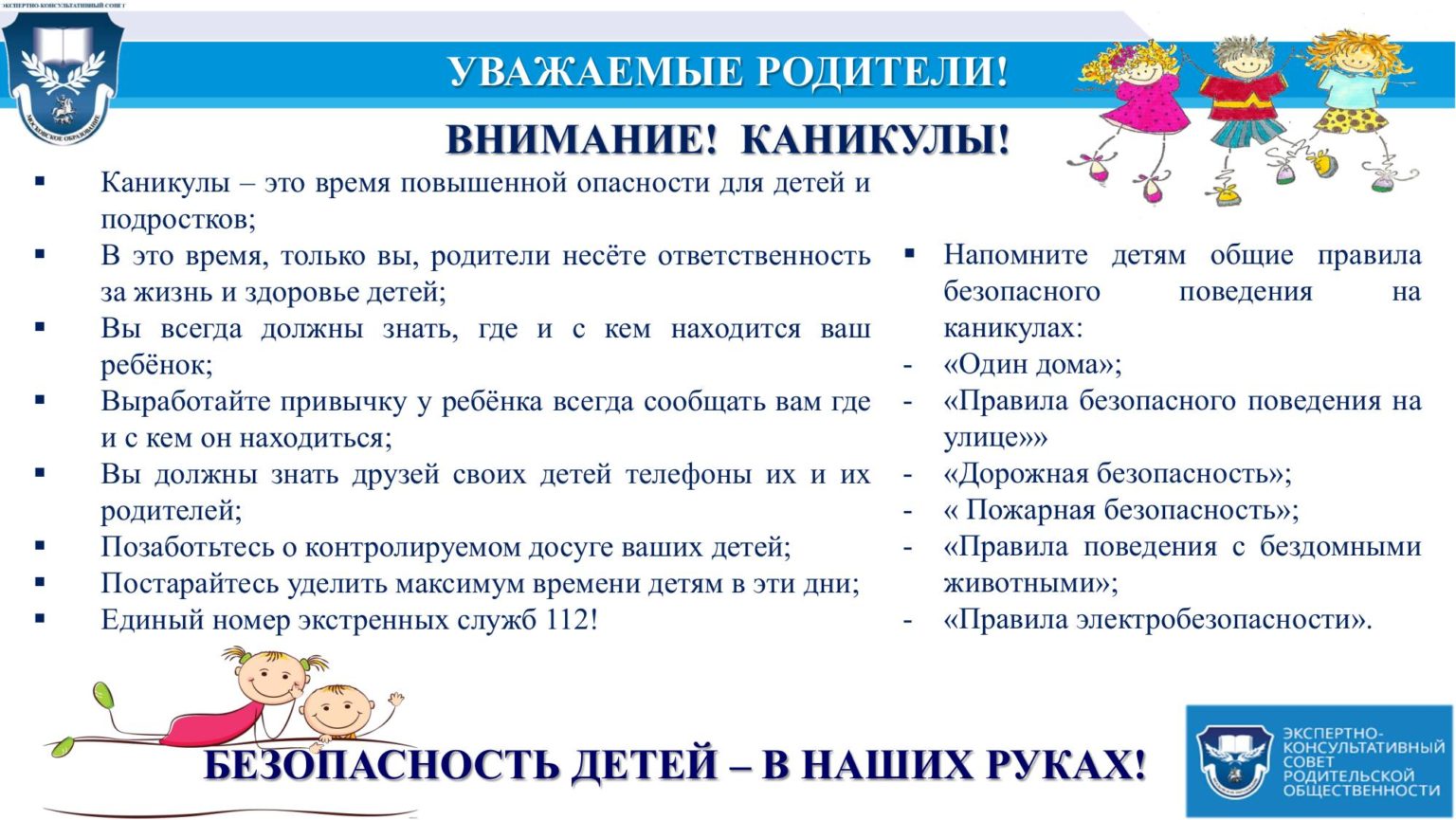Безопаность школьника в период каникул 31.08.2022