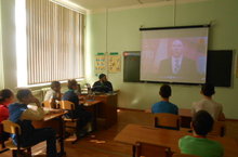 Учитель физкультуры Арикеев И.М. провел урок о перспективах реализации и целях внедрения Комплекса ГТО в 5-7 классах. Учитель рассказал об истории ГТО, атрибутике и нормативах испытаний. На уроке использованы видеоматериалы.
