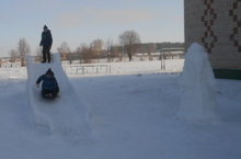 Сегодня ученики начальных классов опробовали горку во дворе школы. Здорово!