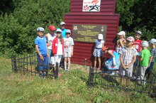 После завтрака отряды провели митинг во дворе школы у обелиска Героя Советского Союза И.С.Башкирова, возложили цветы. Затем возложили цветы к подножию обелиска в селе Завод Нырты. Побывали у дома Героя Советского Союза И.С.Башкирова. затем посетили Зайцева Михаила Александровича, чьё детство пришлось на годы войны. Ребята с удовольствием послушали рассказ дяди Миши о своем детстве.