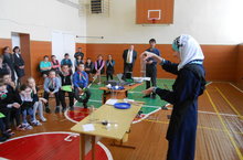В школе началась неделя точных наук. Сегодня на общешкольной линейке учащиеся 9 класса и учитель физики Исмагилов А.А. демонстрировали опыты. Увидели: как монета точно попадает в сосуд, как вода не выливается из сосуда, покрытого бумагой, как держатся в равновесии вилки в сосуде на зубочистке, увидели маятники-шалуны. Но самым интересным показался опыт с Неньютоновской жидкостью: об неё можно было стукать кулаком и не запачкаться или тихонько запустить в неё руки и вытащить «кашу», забить в ней гвоздь, скатать из неё твердый шарик, а раскрыв руку вылить этот шарик. После просмотра опытов вопросов у учеников появилось о-о-очень много!