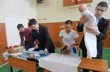 Комитет культуры детской школьной Думы организовали и провели конкурс “А ну-ка, егетләр!”. Ребятам пришлось вспомнить детство - посоревноваться в ловкости вождения игрушечных машин, попасть в будущее – примерить солдатскую форму и выполнить команды, помочь будущим «жёнам» пеленать малышей.