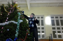 А сегодня коллектив учителей подготовил зал для новогодних праздников: установили и украсили ёлку, развесили плакаты. Всё готово! Ждём начала праздника!