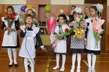 На торжественной линейке было много поздравлений, пожеланий, подарков, цветов.