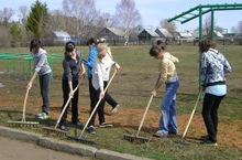 В рамках месячника экологии и охраны окружающей среды прошла акция "Чистота - красота", которую провели учащиеся начальных классов. Они выступили с иннициативой убрать территорию между школой и зданием бывшего детского сада, привели в порядок территорию вдоль старого кладбища.