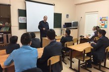 Сегодня прошла встреча учащихся 8 класса с инспектором ПДН Габдрахмановым Р.В. Инспектор рассказал о видах учета, о причинах постановки на учет, призвал подростков соблюдать закон. Напомнил о необходимости исполнения Закона № 71.