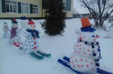 На школьном дворе появилось царство снеговиков: есть здесь и снеговики-лыжники, и снеговики-панки, есть такие, что прилегли и отдыхают.... Все эти снеговики созданы руками учащихся и учителей школы. Все они спешат навстречу Новому году.