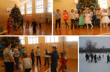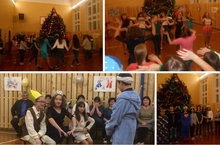 В первой половине дня дети веселились на Новогоднем утреннике. После обеда оформили отрядную газету «Санта Клаусы», играли в спортивном зале и на свежем воздухе.