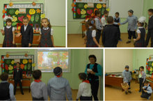 Учащиеся начальных классов сегодня весело и с пользой приняли участие в Празднике урожая. Каждый класс подготовил концертные номера, приняли участие в конкурсах и розыгрышах, подготовленных классными руководителями.