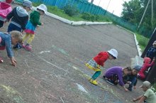 5 июля в МБОУ "Александровская ООШ" дошколята участвовали в конкурсе рисунок на асфальте мелом "Мир вокруг нас".