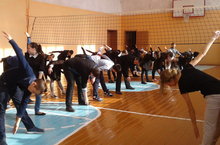 Затем обучающиеся были перемещены в спортзал: общешкольная линейка, зарядка, «Веселые старты и эстафеты». Участвуя в мероприятии, обучающиеся складывают полное, четкое представление о принципах и правилах ведения здорового образа жизни, представлений о пагубном воздействии вредных привычек на организм подростка, выработка стремления заниматься физической культурой с целью поддержания физической формы.