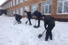 8 апреля отряд юнармейцев МБОУ "Александровская ООШ" всеми силами помогали отчистить территорию школы от снега.
