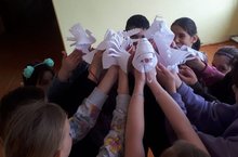 Безнең мәктәптә бүген Бөек Ватан сугышы истәлегенә багышланган " #Тынычлык күгәрчене-Җиңү күгәрчене! акциясе узды. Акция үз кулларың белән күгәрченне ясау һәм аны очышка җибәрүдән гыйбарәт һәм тыныч күк йөзен саклауга юнәлтелгән. -