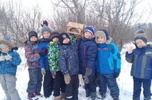 На территории школы первоклассники разместили кормушки для птиц/Беренчеләр мәктәп территориясендә кошлар өчен җимлекләр урнаштырдылар.