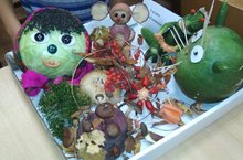 К «Осеннему балу» ребята нашей школы сделали чудесную выставку "Осенние фантазии".Учащиеся для изготовления поделок использовали фрукты и овощи, листья, сено, траву/”Көзге бал”га укучылар “Көзге фантазияләр” дип аталган күргәзмә ясадылар.Эшләнмәләрне ясау өчен яшелчәләр, җиләк-җимеш, яфраклар, печән, үлән кулланылды.