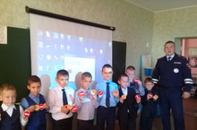 Инспектор ДПС, лейтенант Сафин Р.Р. первоклассникам подробно рассказал о видах световозвращателей и о том, как они могут защитить их при переходе проезжей части.В заключение мероприятия ребятам подарили разноцветные цветоотражающие наклейки.Детям понравились яркие фликеры, и они поспешили прикрепить их на свою одежду/ДПС инспекторы Сафин Р.Р. беренчеләргә яктылык кайтарткычларның төрләре һәм аларның әһәмияте турында сөйләде.Соңыннан аларга төрле төстәге наклейкалар бүләк итте.
