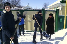 Сегодня учащиеся 9 класса оказали посильную помощь ветерану труда Юнысовой А./Бүген 9 сыйныф укучылары хезмәт ветераны Юнысова Әминә әбигә барып ярдәм күрсәттеләр:капка төбендәге карларын көрәделәр. 19.03.2018