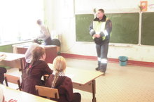 Мәктәптә өлкән дәүләт инспекторы Гараев Р. һәм Хөснутдинов А. белән очрашу булды. Алар укучыларга юл йөрү кагыйдәләрен исләренә төшерде. Юл йөрү кагыйдәләрен үтәмәгәндә,нинди фажигаларга китерүен аңлатты.. Барлык башлангыч класс укучылары отражатель- яктырткыч тагып йөрергә тиешлеген искәртте.