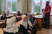 Имам мухтасиб Сармановского района Саид хазрат провёл беседу с детьми начальных классов на тему: " Мой отец- мой герой".Сарман районы Имам мөхтәсибе Сәид хәзрәт башлангыч сыйныф балалары белән "Минем әтием - минем героем"дигән темага әңгәмә үткәрде.