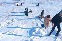 Сегодня после уроков провели час здоровья. Дети катались с горы на санях и тюбингах, играли в игру "Царь горы"./Бүген дэреслэрдэн сон Сәламәтлек сэгате үткэрдек. Балалар таудан чана һәм тюбингларда шудылар, "Тау патшасы" уенын уйнадылар.