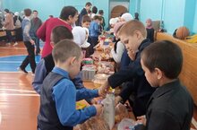 Сегодня прошла благотворительная ярмарка. Дети принесли выпечку, изделия сделанные собственными руками и многое другое. Благодаря большим стараниям и желанию помочь людям с ограниченными возможностями, они смогли собрать 7616 рублей! /Бүген хәйрия ярминкәсе үтте. Балалар пешерү, үз куллары белән ясалган әйберләр һәм башкалар алып килделәр. Мөмкинлекләре чикле кешеләргә ярдәм итү теләге һәм тырышлыгы белән алар 7616 сум акча җыя алдылар!